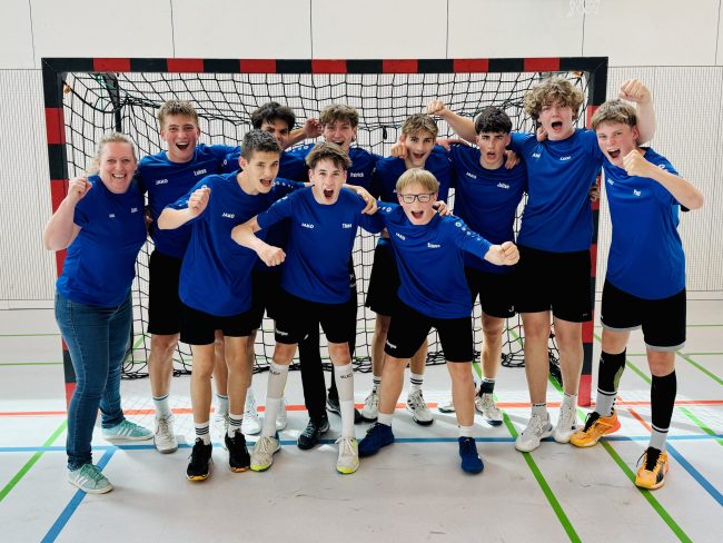 Große Freude nach dem erfolgreichen Finale. Links im Bild Sportlehrerin Melanie Joos, die die Mannschaft begleitete. WG-Handballer ziehen ins Landesfinale ein Mit Leidenschaft, Teamgeist und einem Hauch Sensation haben…