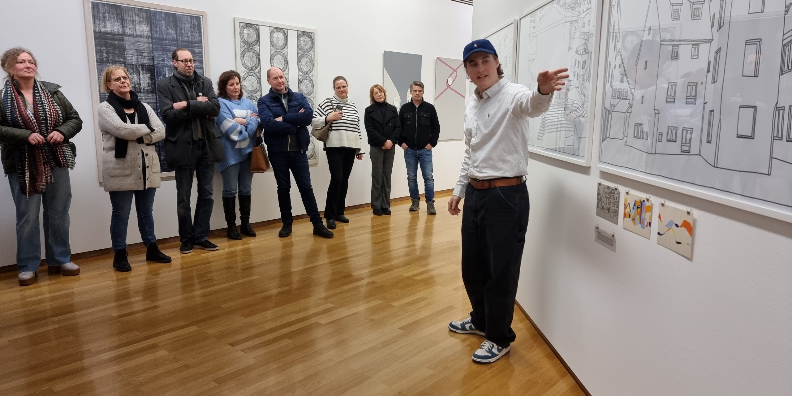 Schülerinnen und Schüler aus dem BK-Leistungskurs, Klasse 12 gingen in einem Zeitraum von acht Monaten zahlreiche Begegnungen im Museum ein. Unter der Leitung von Angelika Kuckcuck (Wieland-Gymnasium) und Lisa Lütjens-Kresse (Museum Biberach) setzten sich die Schülerinnen intensiv mit der künstlerischen Arbeit und dem Museum als Ausstellungsort auseinander. Die Ausstellungsintervention zeigt die Resultate.