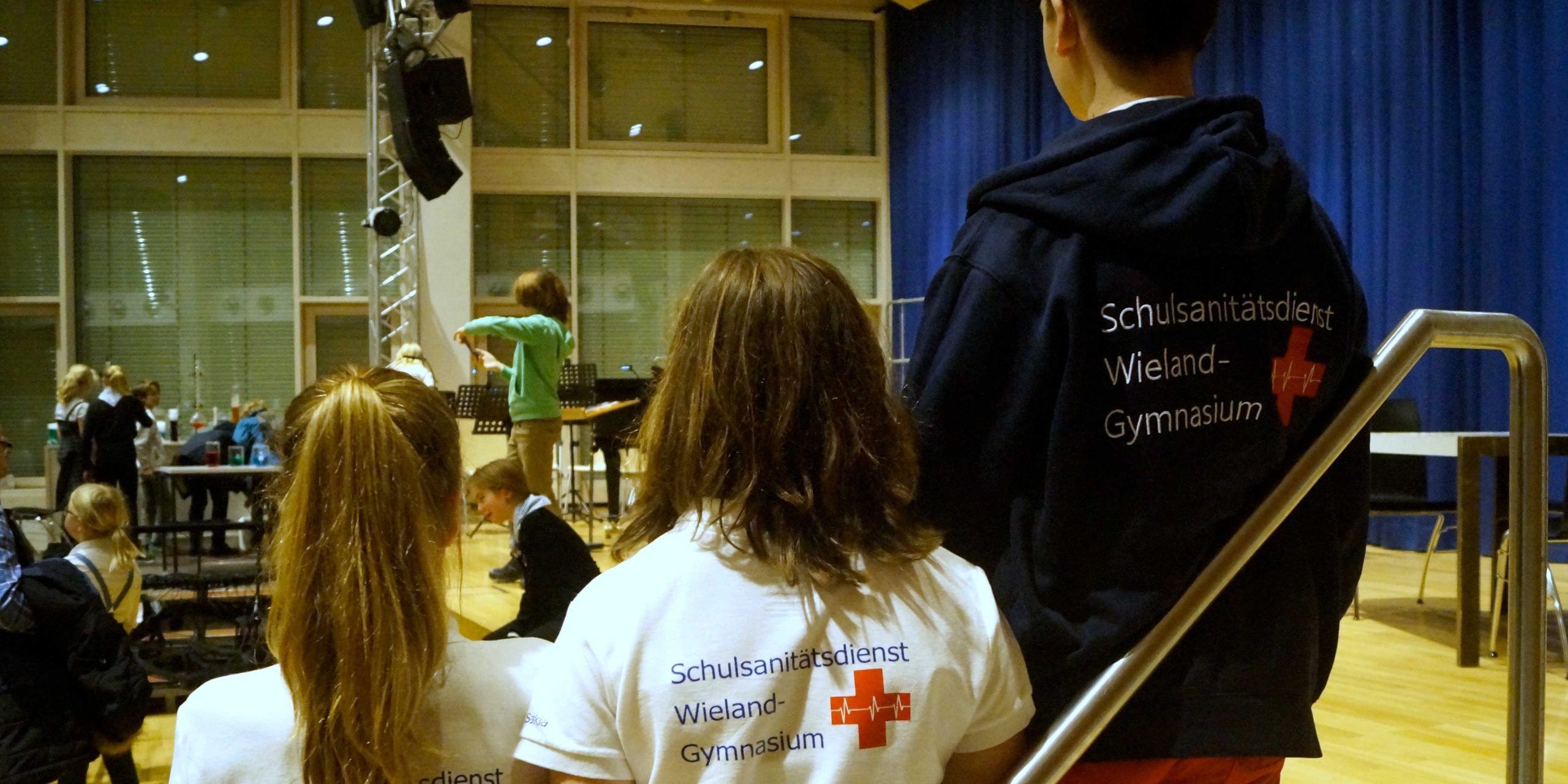 Die Schulsanitäterinnen Anne-Catherine und Saskia wurden dabei von Jannik unterstützt, der seinen ersten Einsatz in einem Bereitschaftsdienst hatte.