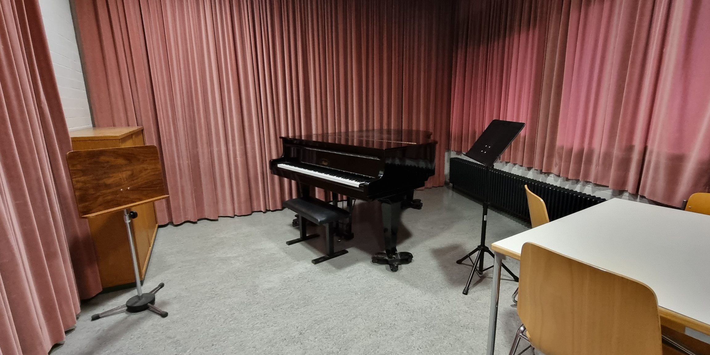 Schüler/innen können nach Verfügbarkeit Überäume nutzen. Insgesamt stehen 4 Musikräume zur Verfügung.